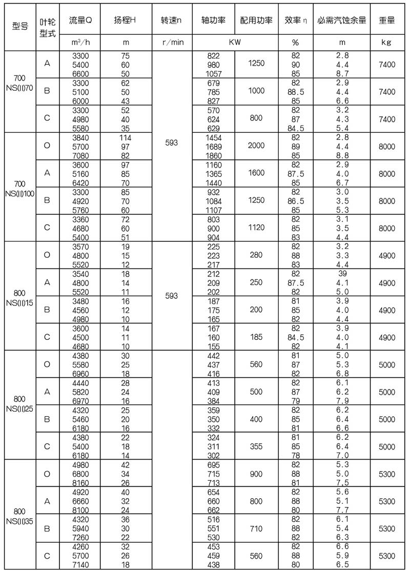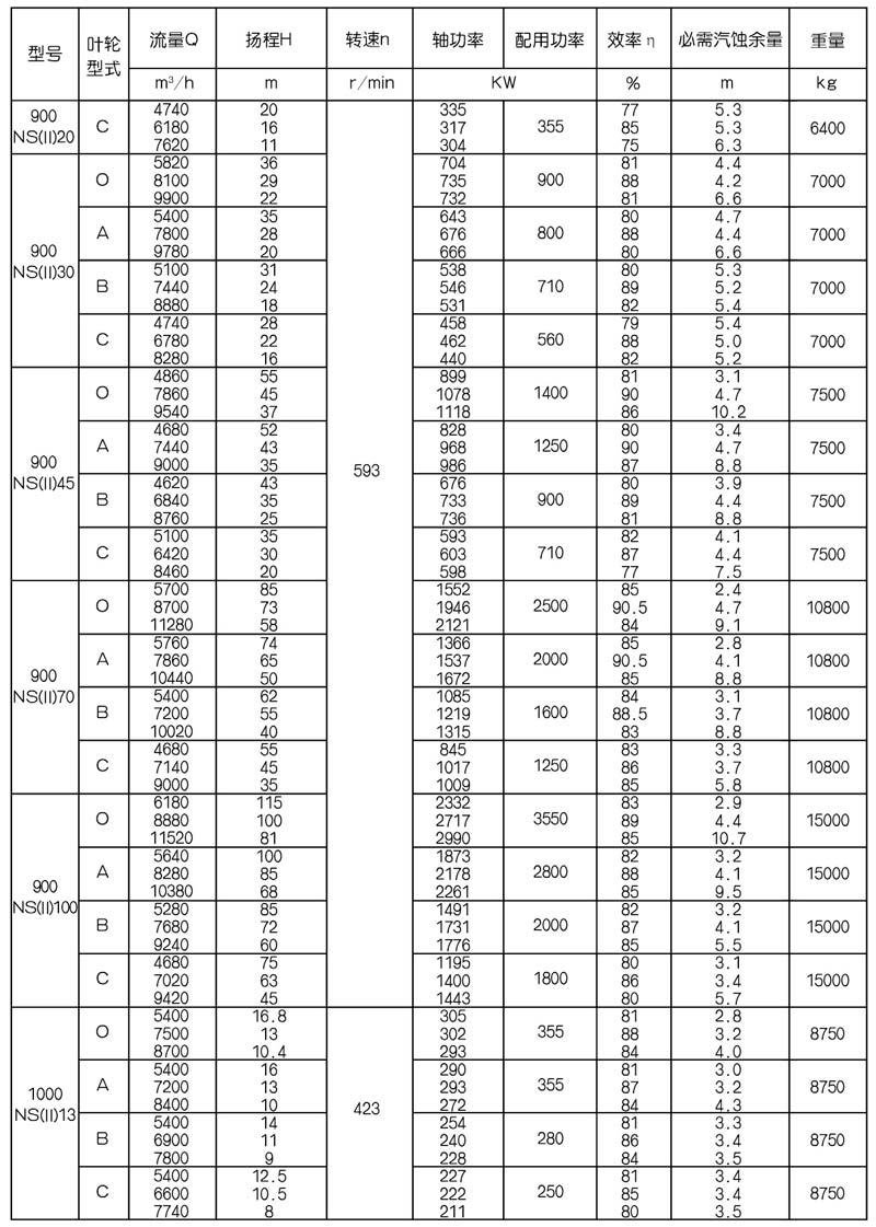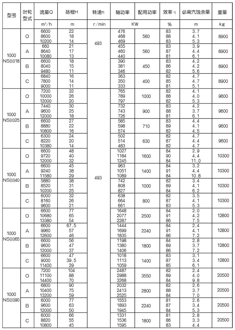NS(Ⅱ)型泵具有很高的效率,在較寬的流量范圍內具有很高的運行效率,可以降低運行費用和選用功率較小的電機,是節能的高效率中開泵。