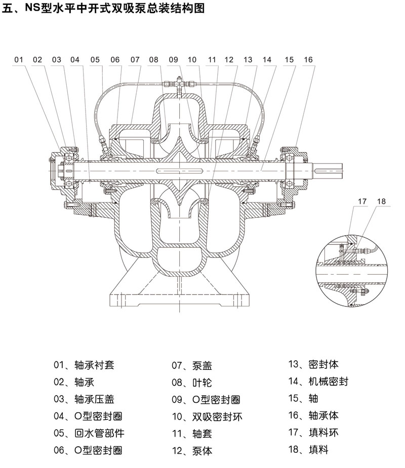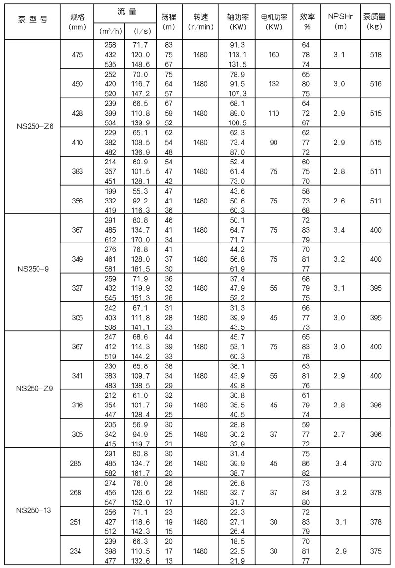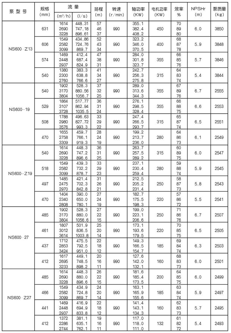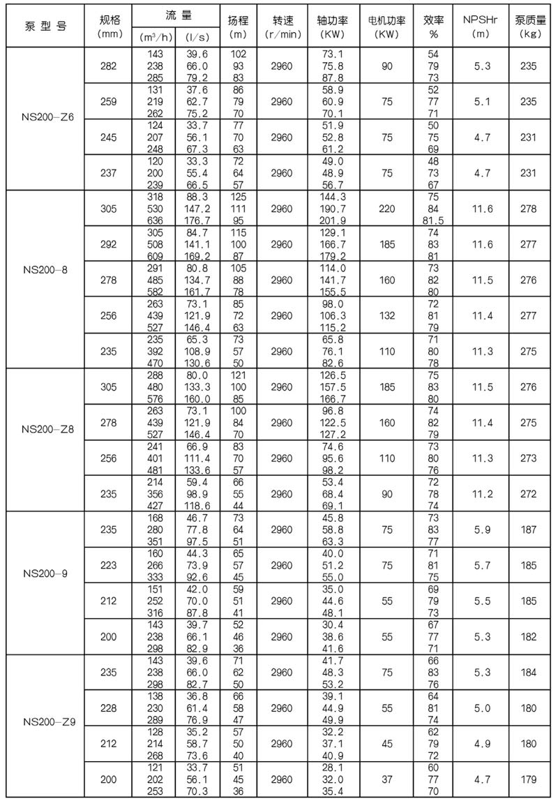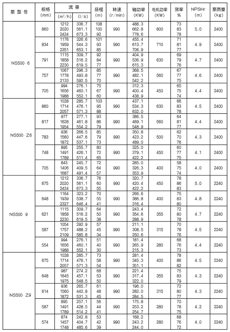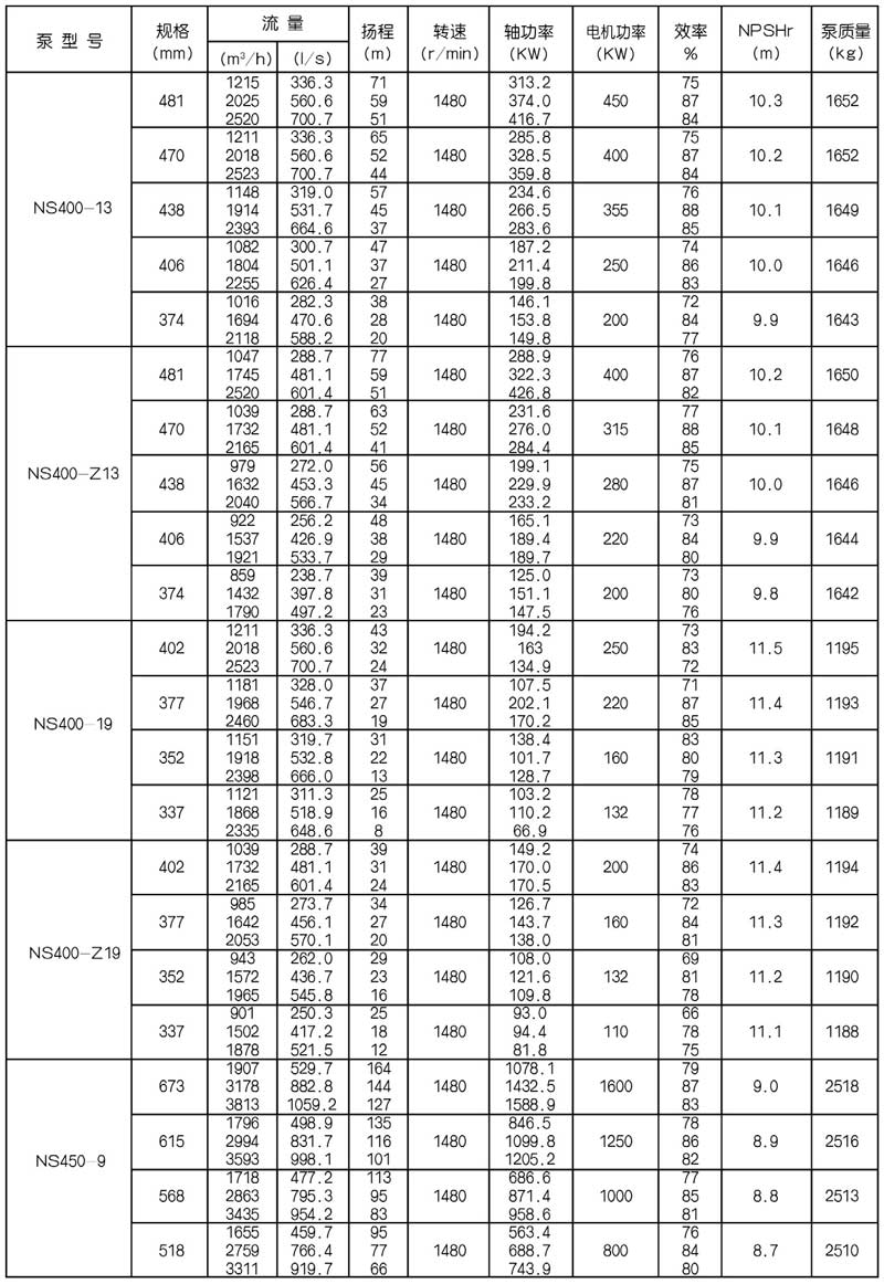 NS型單級雙吸中開式離心泵是我公司總結國內外優秀水力模型,廣泛吸收國內外同類產品先進的設計制造技術,根據國內市場實際需要開發的新型中開式雙吸泵。全系列泵型譜內各型號規劃更加科學合理,高揚程雙吸泵可以代替部分多級泵,大流量雙吸泵可以代替部分混流泵,優化匹配各水力尺寸,汽蝕和效率兼顧,滿足GB/T19762能效評價值,達到節能目標。結構再創新,運轉可靠維護方便、延長使用壽命,使中開式雙吸離心泵優秀泵型發揮更大效益。我公司目前生產的雙吸泵有46種型號,390個規格,處于節能和使用性能范圍考慮,一個型號有兩種葉輪,叫標準葉輪和窄葉輪,以更優性能滿足使用工況要求。本系列泵符合ISO2548C、GB3216、GB/T5657標準。