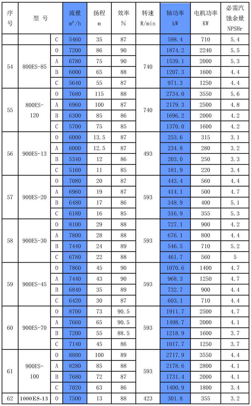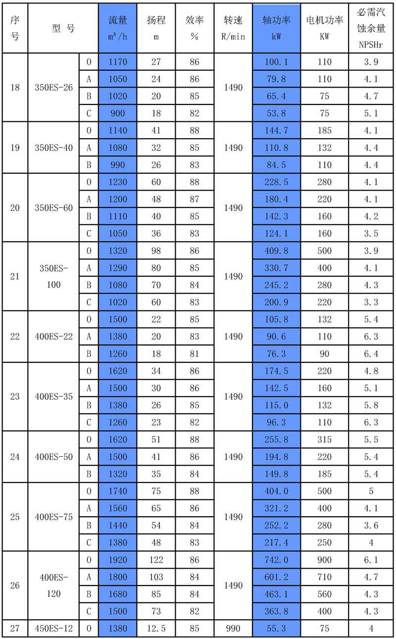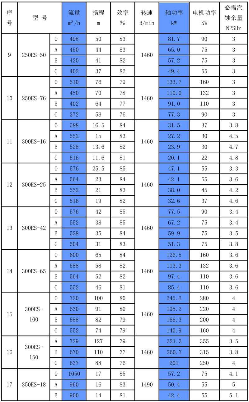 ES 型雙吸泵的葉輪是采用將兩個相同的單吸式葉片背對式放置的結構。該結構左右對稱,液體從吸入室對稱地流入葉輪,產生的軸向力互相抵消,平衡了軸向力。葉輪的流道用砂輪等工具打磨的非常光滑。葉輪葉片的厚度均勻,在進口邊打磨的非常薄,葉片的進口邊設計成圓弧形,有利于提高泵的抗汽蝕性能。