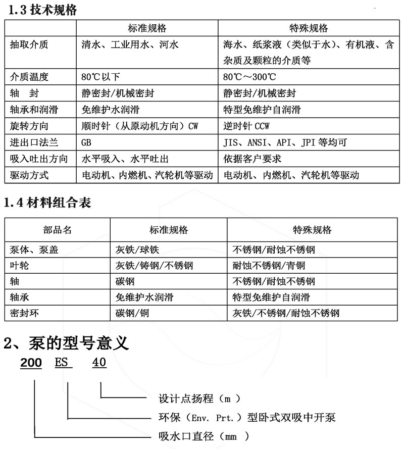 ES 系列環保免維護單級雙吸中開臥式和立式離心泵,是我公司在總結多年雙吸泵制造及應用經驗的基礎上,結合用戶在用泵過程中的痛點,由公司專家與國內外專家共同創造發明的一種新型水泵(臥式泵專利號:ZL 201822092944.2;立式泵專利號:ZL 2019 2 0293130.7)。其主要特點是環保、免維護。
