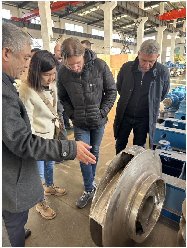 ?2023年11月24日,山東淄泵泵業有限公司迎來了一批來自俄羅斯的外賓,他們對該企業的水泵生產情況進行了實地考察。在參觀過程中,淄泵泵業董事長(魏復興)魏總與俄羅斯外賓以及NSⅡ新型泵合影留念。同時,魏總還向俄羅斯外賓介紹了各種型號水泵以及葉輪配件等相關情況。此外,帶領貴賓參觀了車間內的機械加工區域。