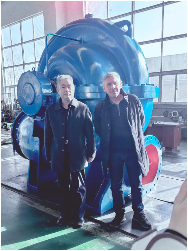 淄泵泵業董事長(魏復興)與俄羅斯外賓在NSⅡ型臥式雙吸中開泵前合影留念